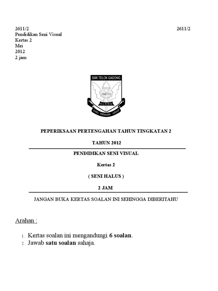 Contoh Soalan Pbs Pendidikan Seni Visual Tingkatan 2 Merdeka Cc